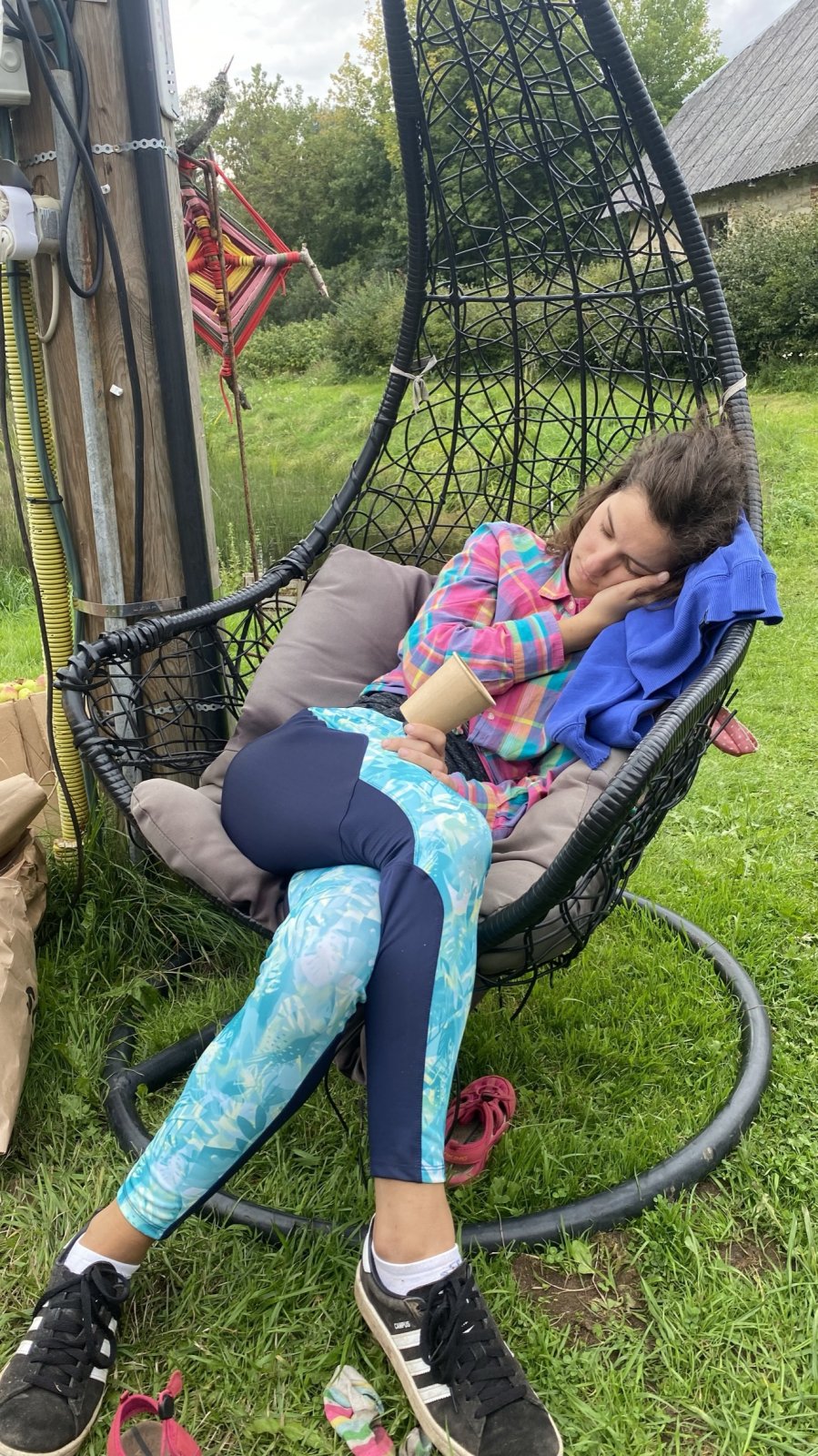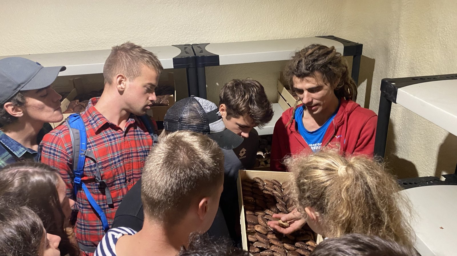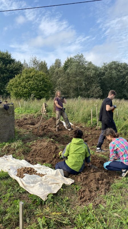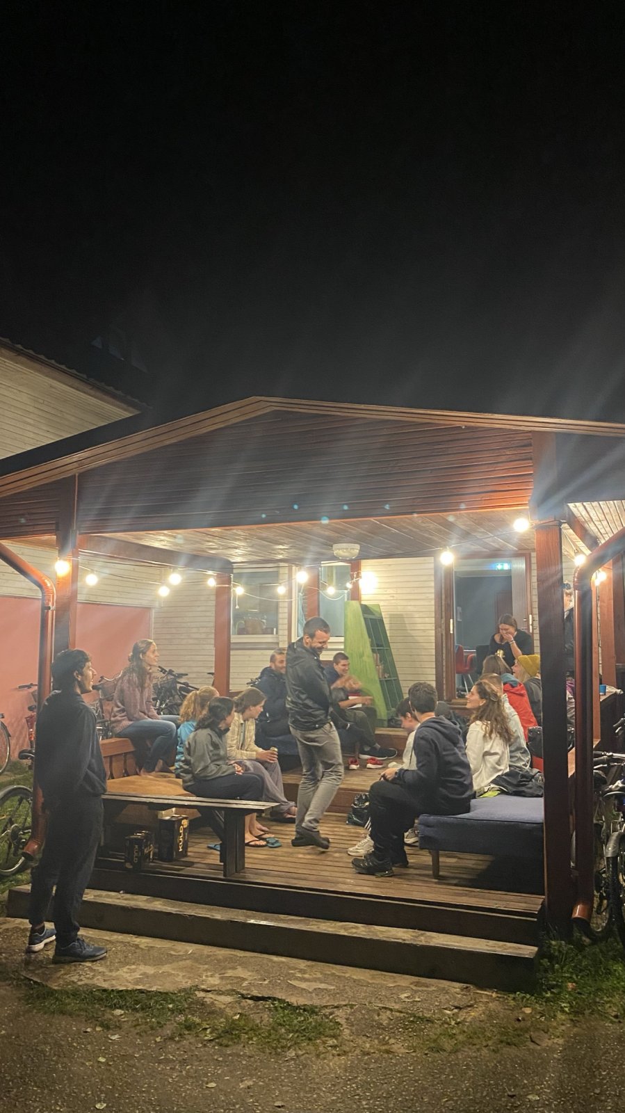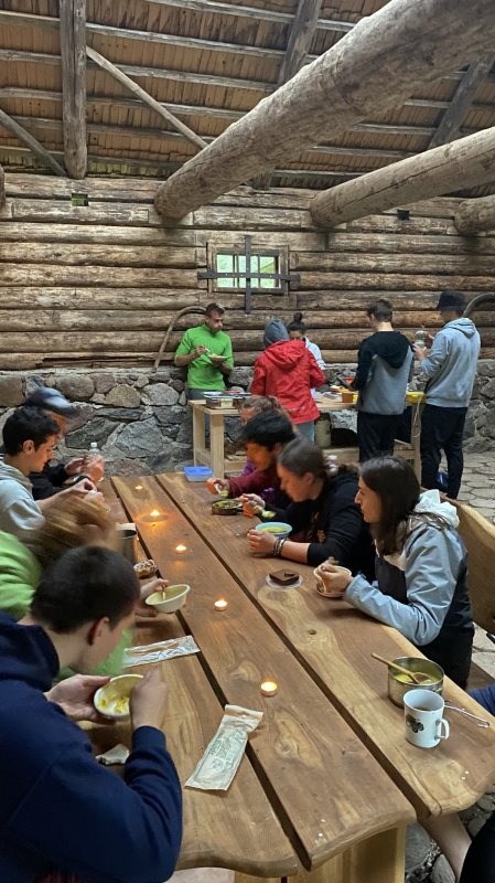 Meie viimane ööbimiskoht Lõuna-Eestis oli väga askeetlikus kohas, kus oli välikäimla ehitatud heinapallide vahele. Päikesepaneelid andsid majja elektrit, millest vaevu piisas telefonide laadimiseks. Joogivee saamiseks oli õuepeal kaev. Palju mõtteainet selle ööbimiskoha valikul pakkus see, et neil oli pakkuda meile vaid 15 voodikohta. Mõtlesime pikalt, kas laenata ülejäänud vajalikud madratsid-magamiskotid, või hoopis osta midagi odavat. Et noortevahetus on piiratud eelarvega ja samas loodushoiu ja vähese tarbimise teemal, ei soovinud me ka maailma tarbetut prügi tekitada. Viimaks otsustasime siiski osta hästi odavad magamiskotid (mida edaspidi saame samuti kasutada), sest rentimine oleks läinud veelgi kallimaks. Madratsite osas saime ühest lastelaagrist väljavahetamisele minevad madratsid (Aitäh Kullo Karepa laager ja laagrijuhataja Anu!). Nii oli väheste voodite probleem ka lahendatud ja korralduslikud ettevalmistused tehtud.