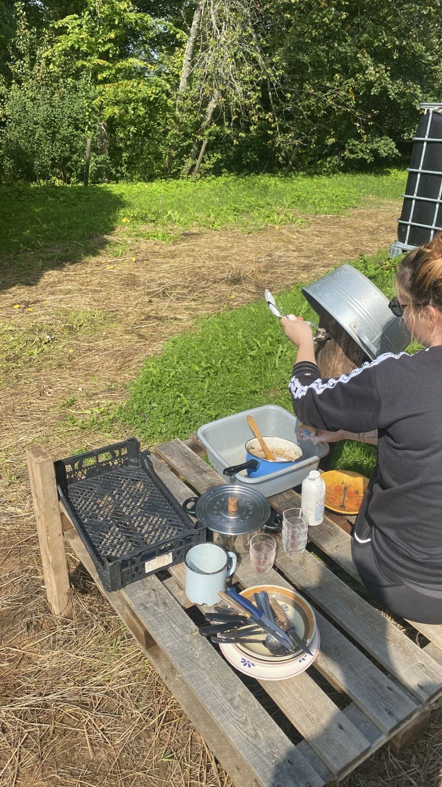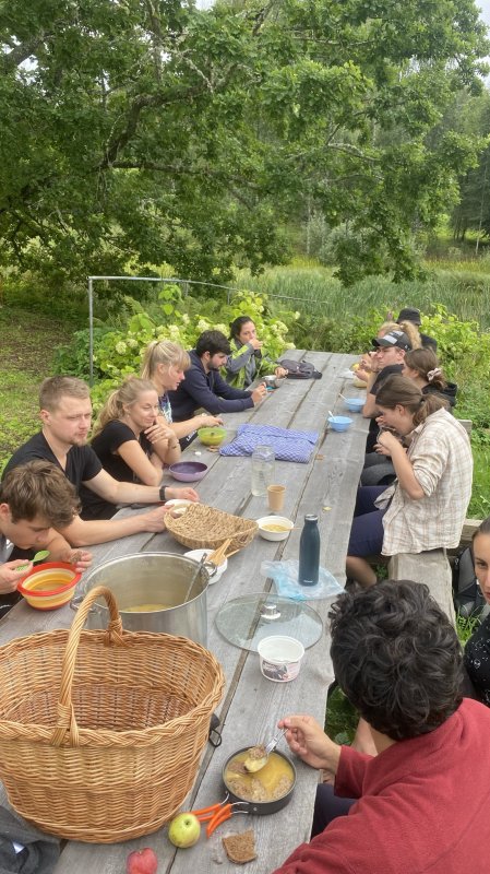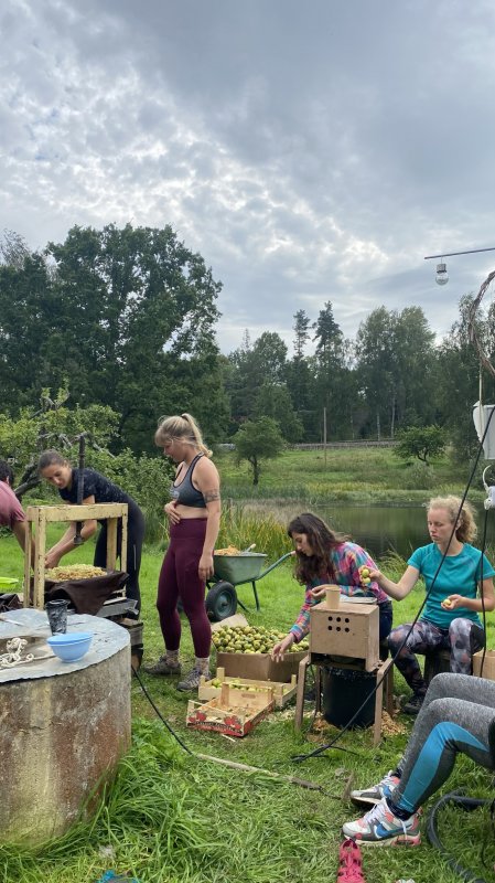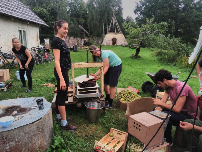 - tutvusime ökoküla elanike tegevustega 4 erinevas talus, saades seejuures erinevates majapidamistöödes ka käed külge panna (mahlategu, puude lõhkumine, puude istutamine, värvimine jms). Toitlustus oli ökoküla vabatahliku sakslase poolt, kes kokkas meile päris maitsva söögi