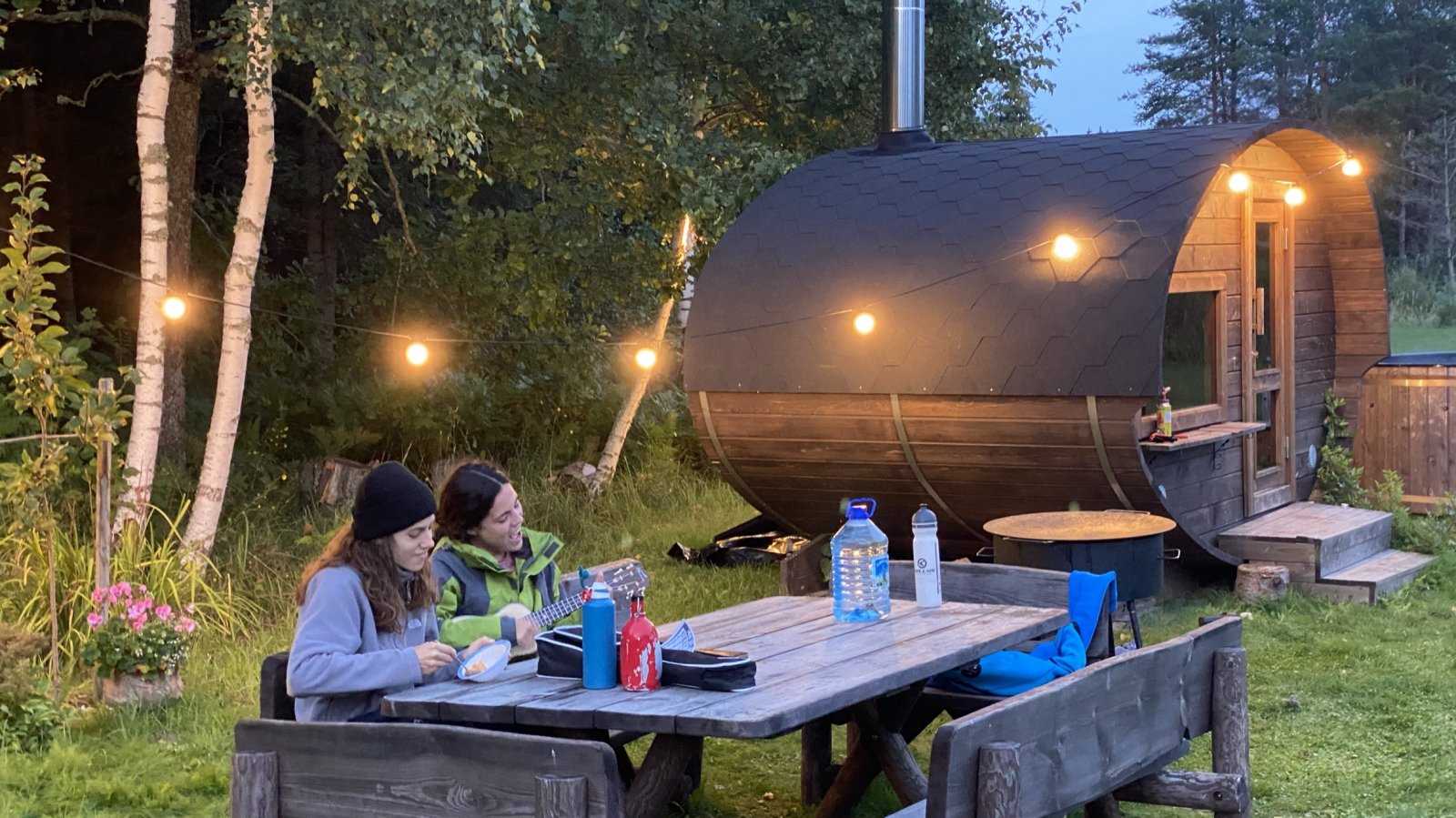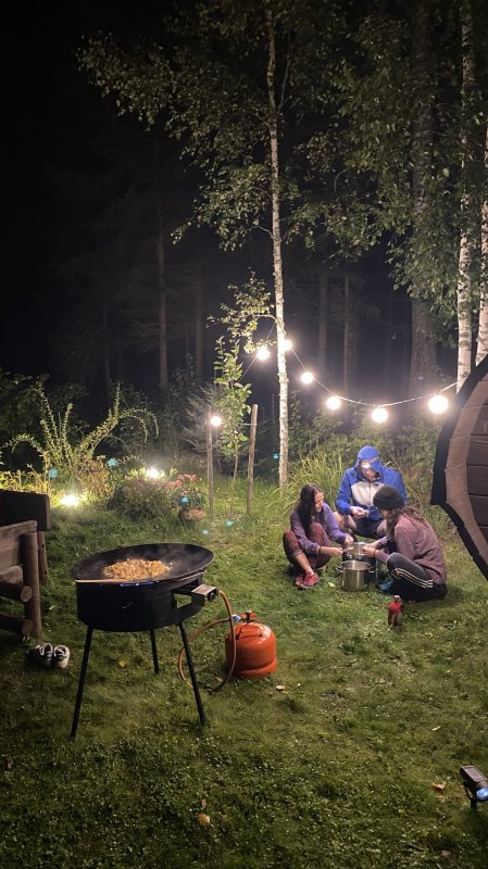 Sellest ööbimiskohast kujunes tõeline pärl Lõuna-Eesti rattatripi lõppu, mis pakkus meile väga looduslähedast tunnet ning andis aimu meie igapäevastest ja harjumuspärastest mugavustest sõltumisest. Ööbimiskohast üle heinamaa jõe kaldal asus ka ehtne suitsusaun, mille lähistele olid ehitatud püstkojad. Sealne atmosfäär ja lõkke ümber olek andsid meile väga mõnusa ja meeldejääva õhtu!