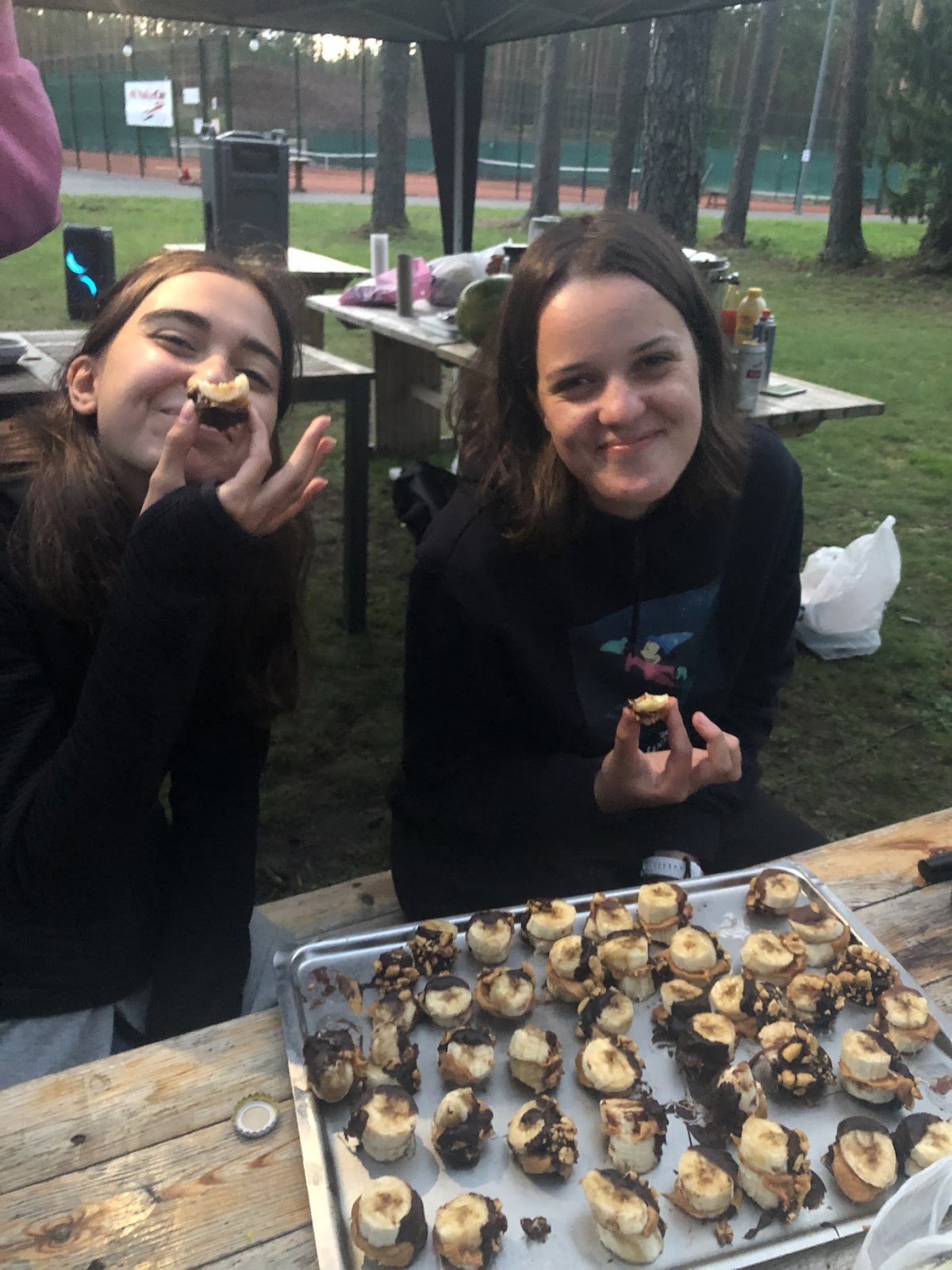 Laupäeval olime lisaks töötubadele vabatahtlikud Gravel Grinderi rattavõistlusel, meie toitlustasime ühes punktis võistlusel osalejaid kergete snäkkidega. Tegime leivakorvikesi, jagasime arbuusi ning valmistasime spordijooki. See käis kõik päris kiirelt. Jõudes hakkasime kiiruga asju ette valmistama, väga palju segadust oli kes mida tegema peaks, kust leida ekstra nuga, kuhu nõusse panna korvikesi, mille peal lõigata ja ühel hetkel teatati et kohe-kohe ratturid jõuavad. No ikka päris kiireks läks. Aga jõudes oli kõik just napilt valmis saanud ja lauad olid snäkke täis.