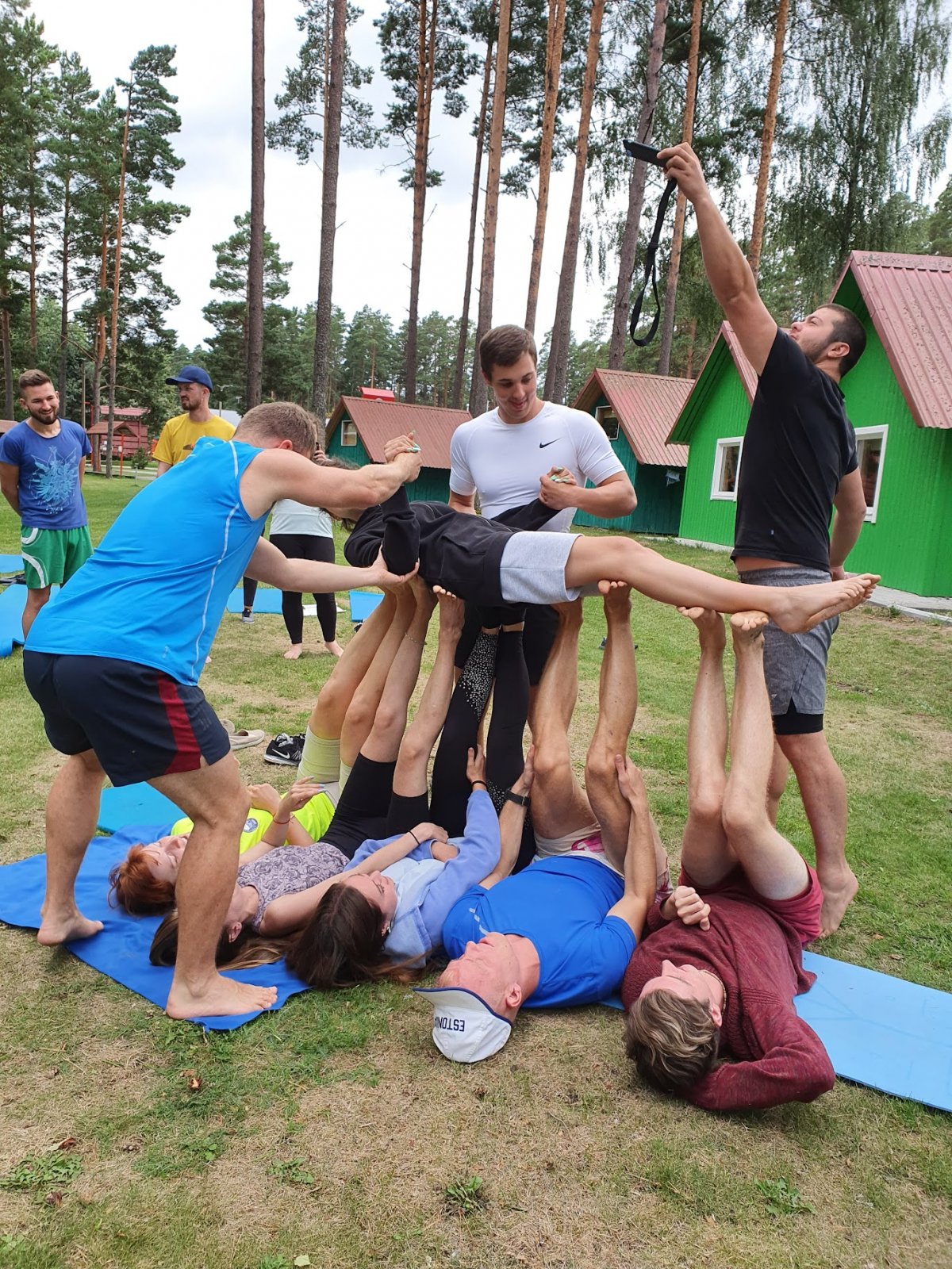 Üheks mänguks oli näiteks käbide varastamine, kus käbitopsid oli paigutatud ringikujuliselt ning iga mängima pidi enda topsi kõige rohkem täis saama ja kui sinu tops sai käbidest tühjaks, siis olid sa mängust väljas. See tundub lihtne, aga tehes seda minut aega täiskiirusel siis oli kops täiesti koos. Mis on sellise töötoa eesmärk? See paneb noored raamidest välja mõtlema ning arendab loovust, ettevõtlikkust ja tiimitööd.